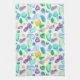 En roligt kökshandduk för ditt hem som dekoreras med en mönster av havsglas, marmor och knappar i mjuk pastel färg av havets grönt, havsblått, lila och gult som är målad med vattenfärg med en vattenfärgsbakgrund. Underbar gåva till någon som tycker om att samla in havsglas!