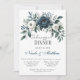Ett sofistikerat bröllop med en marin blå vattenfärgsutandning av blommigt som är försedd med lush peonies, ro och eukalyptus greenery i nyans av marinblått, grönt och elfenben. Utformningen förbättras av en silver-grått-tryckt låda under andningen med modern teckensnittstext. Baksidan av inbjudan fortsätter temat med en matchande blommigt arrangemang för ett sammanhängande och elegant utseende. Perfekt för par som vill ha tidlös och klassvis bröllop-kontorsutrustning.