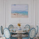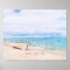 "Havets dag"-typografi, skriven i sand på denna fångande scen av en inlagd fiskebåt på en sandstrand med vattenfärg aqua blue sea och solig himlar ovan.