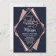 Elegant, chic och modern med en reflexform, faux-tryckt ro-guldets geometriska rombformskontur på marinblått, mauve och rosa-diamantuttaget, Födelsedagsfest inbjudan. Den här klassiska och sofistikerade designen är perfekt för individen i klass, snyggt och trendig Birthday. Anpassa med ditt eget meddelande på framsidan och anpassat monogram på baksidan. All fotoutskriftsdesign