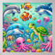 Dyk in i en levande undervattensvärld med denna färgglada havsposter som visar lekfulla havsdjur, korallrev och livlig marine liv. Designad för att väcka fantasin och glädjen, fångar detta konstverk havets skönhet och mångfald på ett roligt och engagerande sätt.