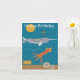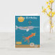 Havsdjurets födelsedagskort med narval, bläckfisk, krabba och sanddollar. Matchar med papper inslagning av havsdjur