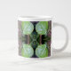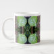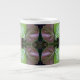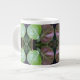Mönster på detta Giant Mugg, i naturliga skuggor av gröntar, med en lila och en ljusblå nyans, gjordes av ett originalfoto av havsdruvor som odlades längs stranden. Fotot är en skärva som visar två av de nästan runda löven, varav den ena fortfarande är en ljus gult-grönt, och den andra blir en rödaktig lila när vintersäsongen närmar sig.