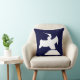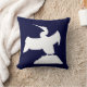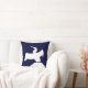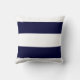 En del av den havsinspirerade inredningen HAvsFÅGEL, VIT på marinblå kudde på ena sidan och marinblå och vit rand på baksidan.