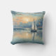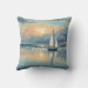 En segelbåt seglar över ett lugn hav med vackra solnedgångshus över himlar och vatten.