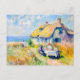 En fredlig imponerande målning av en stuga i tak vid havet. Det varma färg, spola grönt och serenhavet skapar en mysigt och nostalgisk kustscen.