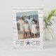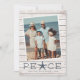 Chic kuststil julkort lägger en strandig touch till dina julhälsningar. Perfekt för att dela semesterfoton, eller för familjer som bor i kustnära, tropiska, varma väder eller ö-lokaler, har denna lättsamma design ett favoritfoto på en ljus träplankebakgrund med "fred" längs botten. En sjöstjärna tar platsen för bokstaven "A" för en söt kustnära touch. Lägg till ditt eget julmeddelande och dina namn eller familjenamn, tillsammans med ett extra foto och personligt meddelande på baksidan.