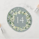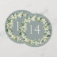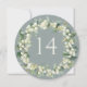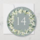 En mjuk blågrön cirkulär eller fyrkantig dubbelsidig bröllopsbordnummerkort med handmålade snöbär och eukalyptus arrangrerade i en vacker botanisk krans. Texten är helt redigerbar. Andra mönster, produkter för bordnummer och kompletterande artiklar finns tillgängliga i min butik.