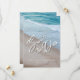 Fira din kärlek vid de lugna stränderna med våra Ocean Love: Elegant Beach Wedding Save The Date-kort. Framsidan visar en delikat och hjärtlig fras "Save the Date" i utsökt hjärtvektorkalligrafi, som symboliserar den kärlek som binder er samman. Era namn och det betydelsefulla datumet visas elegant i vitt, vilket ger en personlig touch till dessa förtrollande inbjudningar. Baksidan fortsätter magin med anpassad text "save the date"-detalj mot en bakgrund av havsstranden under en klar blå himmel.
