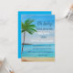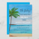 Åh Baby! Blåhav, hav, tropisk strandillustration, inbjudan till babydusch. Nautisk, handflatan träd vattenfärgsmålning av Monika Howarth. Kustillustration, inbjudan till babydusch. Anpassa den med dina detaljer.