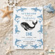 Tackkort för havsdjurshaj 1-års födelsedag för ett undervattensparty. Sött havstemat kort för att tacka gäster på en rolig första födelsedagsfest.