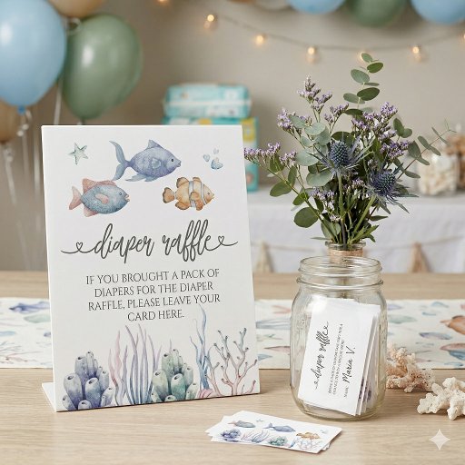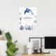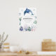 Denna bedårande välkomstskylt för en baby shower visar charmiga akvarell marina varelser, med ett par delfiner i toppen som symboliserar tvillingarna.
