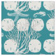 Havsliv tyg med vitt mönster över havets blågröna färg. Sjöstjärnor, sjöhästar, sanddollar och koraller skapar ett intressant "under havet" tryck i ditt val av tyg och storlek. För att ändra bakgrundsfärgen, klicka på den orange "anpassa" knappen och scrolla ner för att se färgalternativ. Ögon droppen tar dig till en färgpalett för fler alternativ.
