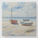 "Havsreat". Resten av vågar ligger vid kusten av detta fredliga sjölandskap, där båtarna vilar stilla på stillastående sand, under ett stillastående blå himmel. En färgstark stiliserad vattenfärg i mjuka blues and sand färg.