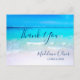 Blått vatten och vit sand med orden Tack som kan ändras till ett namn eller tas bort .