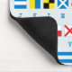 Nautical Flaggor Maritime Signals Mousepad. Nautiskt alfabet (signalkoden Internationell) + blått rand. Sjöfartssignal internationell flaggor. Blått, rött, gult, svart och vitt + ljust grått-blått.
