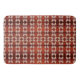 Det ursprungliga sjöskal-mönstret i rött av ZoeSPEAK på denna badrumsmatt är gjort från Zoes ursprungliga fotografi av ett litet, pastellfärgat persikoskål format som en konk, med en vacker prickstruktur som virar runt från spetsen. Den röda bakgrunden gjordes från ett originalfotografi av julpalmer.