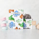 Cute hand plockade havslevande varelser som krabbor, bläckfisk, fisk och havssköldpaddor. Tur för babyduschar eller födelsedagar. Färg är blått och orange.