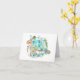 Vattenfärgad havsköldpadda och tropiska blommor är vackra på detta grundläggande blankokort. Ditt handskrivna meddelande kommer att bli ännu mer speciellt med de tropiska bilderna i blått och akvatiska områden på framsidan. Blå hibiscus-blommor och grönt-banans löv omger havssköldpaddan för ett hav-, ö- eller strandtema. Havsblått och grönt för havs gör en enkel mall för hawaiiska bröllopsinbjudningar. En vacker match för Malibu Blue eller Bahama Blue bröllopsinbjudan färg.