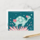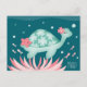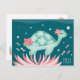 "Havssköldpadda Maui" vykort med en illustration av en havssköldpadda och en sjöstjärna omgiven av bubblor, fiskar och hibiskusblommor. Svävande i Maui, Hawaiis hav.