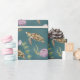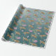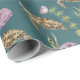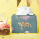 En vattenfärg målad med pappra havssköldpaddor med lila korall och sjögräs mot en djup grönt havsbotten.