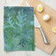 16" x 24" kökshandduk med en avbilda av en blått- och gröntbatik av havssköldpaddor som simmar bland ett överflöd av havsväxter. Se att matcha trasaservetten, den pappra coctailservetten, trasabordstablett, papper bordstablett och underlägg. Se det helt under havskökshandduksamlingen i linnena för FOOD/BEV | dela upp.