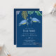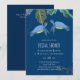 Förtjusande havssköldpaddor och tropiska blad pryder denna moderna bröllopsartikel med tema hav och strand, en del av en större samling. Färgtemat här är livfullt blått och gult.
