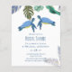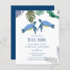 Bedårande havssköldpaddor och tropiska blad pryder denna moderna bröllopsdetalj med tema hav och havsliv, en del av en större samling. Färgtemat här är livfullt blått och gult.