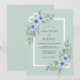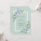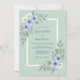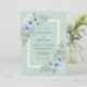 Denna design har en mjuk havsskumgrön bakgrund dekorerad med ömtåliga akvarellblommor i nyanser av himmelblå och elfenben. Eleganta eucalyptusblad och grönskaaccent skapar en lugn botanisk estetik. Perfekt för ett romantiskt vår- eller sommarfirande, denna konst väcker en känsla av naturlig skönhet och stillhet.