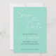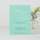 Enkla bröllopsinbjudningar med white, stiliserad skrift på en trendig, havsskumfärgad bakgrund. Redigera och ersätt namn, datum och plats med dina egna. Välj storlek på inbjudan och pappersstil.
