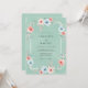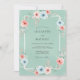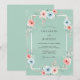 Denna design har en lugn havsskumgrön bakgrund med ett delikat arrangemang av blommande flora. Mjuka korallrosor och bleka blå sippor skapar en lugn färgpalett. Whimsisk grönska och eukalyptus kvistar tillför naturlig elegans. Den konstnärliga displayen frammanar en fridfull atmosfär för en utomhus sommarceremoni.
