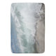 Skadat havsskumma havsvatten vågar fångat på en sandstrand som skapar ett magiskt ögonblick i tiden. Fungerar. Perfekt för alla stranddekanter.
