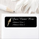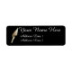 Ett foto av ett vitt spiral-format årstidsskal med guld färgad linjer, på svart bakgrund. Copyright ©Kimberly J Tilley. Anpassa den här säsongsadressetiketten med din sändningsinformation.