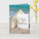 Ett blankt kort sätts elegant mot en strandbakgrund, tillsammans med känsliga vita zigenarblommor, en stjärnfisk och en sanddollar för en 45-årsdag i bröllop. Inre text kan ändras.