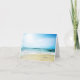 Tunt himmel, blått vatten och sandstrand tackkort med modern typografi. Tom insida så att du kan skriva ditt meddelande för hand.