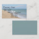 Söten beskådar av det vinkara hav, och den sandiga stranden med söt skuggar av blått - baksidaen av kortet matchas till havfärgen i fotoet