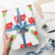 Themed slående in papper för hawaiansk jul med röda designade hibiskus- & Monstera löv att se likt en hawaiansk version av järneken. Designerna förbinds by stränger av Mokihana. Bakgrundsfärgen kan ändras till någon färg som du önskar.