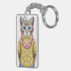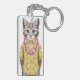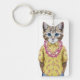 Denna design presenterar ett porträtt av katten i en sommarskjorta och hawaiibolei.