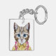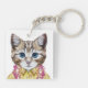Denna design presenterar ett porträtt av katten i en sommarskjorta och hawaiibolei.