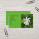 En visitkort som presenterar för Pikake för dofta vit som en hawaiansk blommar jasmin kura ihop sig mot en bakgrund av gröna löv. Ta copyrightt på © 2017 av Carolyn Croyle. All reserverad rättigheter.