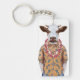 Denna design presenterar ett porträtt av kon i sommarskjorta med hawaianska lei.
