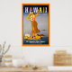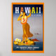 Hawaii av Clipper. Pan American Airlines vintage resor poster. En inhemsk hawaiisk dansare med gräskirt och leis, danser bland andra hawaiiikoner. I bakgrunden, ett elegant flygplan.. Underbar vintage affisch av Hawaii! Få det ramat, eller inte! Finns även på kort, vykort och notekort i vår butik.