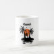 Ett kaffe mugg som skildrar en solnedgång på en Hawaii-strand med handflatan träd. Ett välkommet tillskott till alla hem i Aloha-staten.