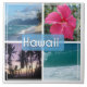 Ett lysande fotokollage Hawaii med en sandstrand, handflatan träd, en lavendel solnedgång över horisonten och ett akvablått hav. Av https://www.zazzle.com/store/celestesheffey #oahu