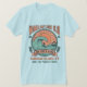 Catch the ultimate wave with this stunning retro Hawaiian surf graphic tee. Featuring a bold surfer riding a massive curling ocean wave under a glowing sunset, framed in a rope circle badge with tiki masks, seashells, and tropical palm trees — all rendered in that gorgeous faded vintage surf style.