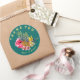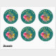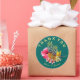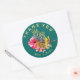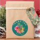 Hawaiian bröllop tackar dig för klistermärken. Rund med anpassningsbarnas böjda text överst och grund. Ananas och tropiska blommor utgör mittpunkten. Vackra blommor, stora rosa hibiscus och gult paradisfågel omger två ananas. Malltext är lätt gult som döljer den svarta bakgrunden.