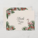 Den här platta Tacken från elegant Hawaii har handdragna tropiska hawaiiska flamingobilder i svart bläck, där rosa flamingos, hibiscus och jasmin blommor, ananas och tropiska löv visas. Baksidan innehåller ett personligt Tack från Bride to Be. Elegantens elfenbensbakgrund.