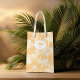 Ge dina tropiska vibes med den här klassiska hawaiianinspirerade presentsäcksdesignen. Med lush white handflatan träd silhuetterad mot en sommarbakgrund i solig gyllene gult fångar mönster ölivets tidlösa skönhet. Perfekt för personlig som kan presenteras ge eller lägg till din logotyp till den här mångsidiga designen för att lägga till en liten bit av tropikarna till presenten. Anpassa mönster storlekt och anpassa texten så att den blir unik för dig. Sök i ID1093 om du vill se andra produkter med den här designen.