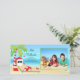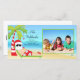 Vår söta hawaiiska julfoto har baddräkt i tomten på strandstolen med en cocktail med en julafton röd och vit handflatan träd med det traditionella God jul hälsning i Hawaiian ~ Mele Kalikimaka satt på en vacker strand och havsbakgrund. Perfektens tropiska julkort för att familjens semesterfoto med vänner och familj den här julhelgen. Lägg till text och foto och du är redo! Besök våra butiker på www.celebrateitinvites.com & www.firateitholidays för hela helgdag! ©JW illustrationer