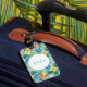Anpassningsbar bagagetapp som visas med ett mycket tropiskt hawaiskt tryck med Aloha-text. Anpassa den här märkrn eller köp som det är.